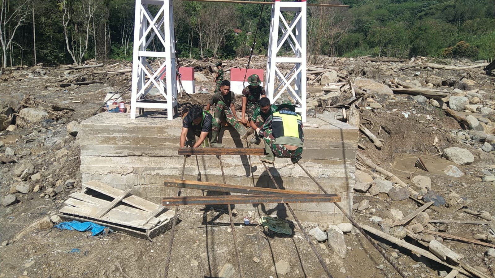 Pembangunan jembatan ini merupakan wujud nyata sinergi antara TNI Angkatan Darat dan masyarakat dalam mendukung percepatan pembangunan infrastruktur di daerah terpencil. Seluruh material utama jembatan disiapkan oleh TNI AD, sementara pengerjaan di lapangan melibatkan personel gabungan dari Koramil 09/Ketol, Kodim 0106/Aceh Tengah, Batalyon Infanteri Teritorial Pembangunan 854/Dharma Kersaka, serta personel dari Pusat Zeni Angkatan Darat. Kegiatan teknis di lapangan dikoordinir oleh DPP Serka Bahtiar guna memastikan setiap tahapan pekerjaan berjalan terarah dan terintegrasi.